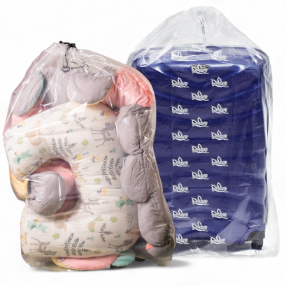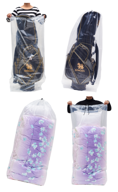 2 PCs/pack Drawstring Plastic Dust Cover Bags, transparent Storage Bags with multi-purpose for Home Organization, suitable for luggage, blanket, big doll, duvet and reusable (Golf Bag & Mattress Bag)