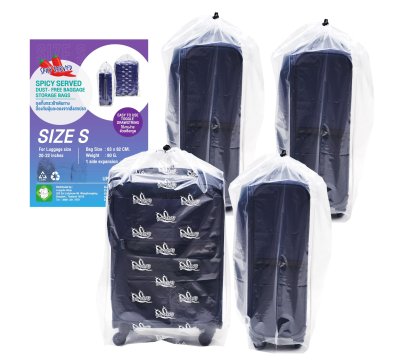 4 PCs/pack Drawstring Plastic Dust Cover Bags, transparent Storage Bags with multi-purpose for Home Organization, suitable for luggage size 18-32 Inches and reusable (Size S)