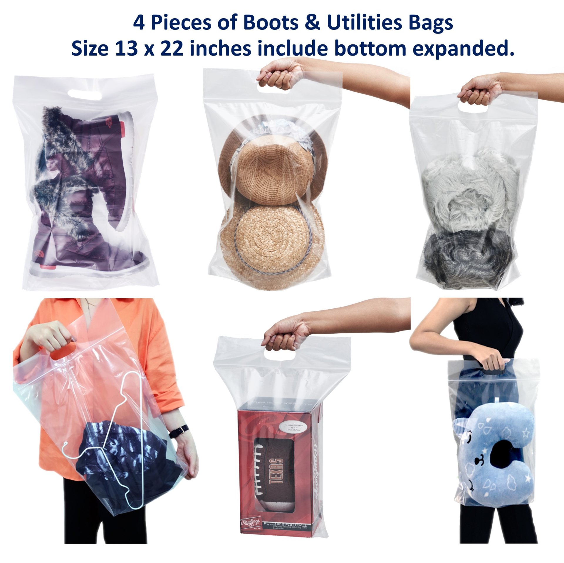 HEAVY DUTY PLASTIC: LDPE plastic pellets 70 microns thickness. Transparent plastic zip lock bags. Easily and quickly identify the content in the Bags. Well organized and dust free in the closet can keeping hats and scarves.