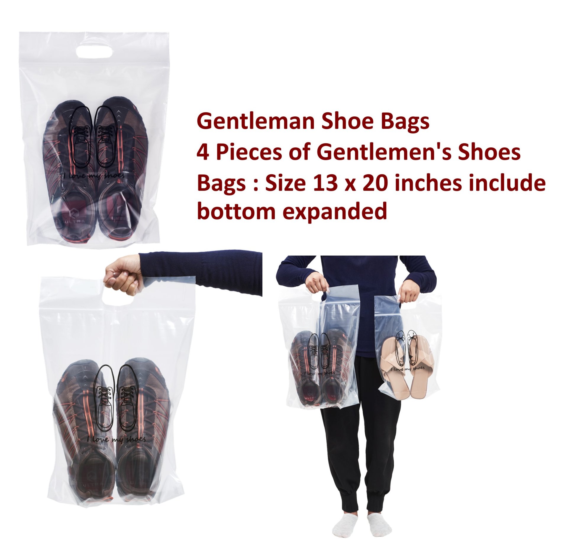 HEAVY DUTY PLASTIC: LDPE plastic pellets 70 microns thickness. Transparent plastic zip lock bags. Easily and quickly identify the content in the Bags. Well organized and dust free in the closet can keeping Gentleman Shoes.